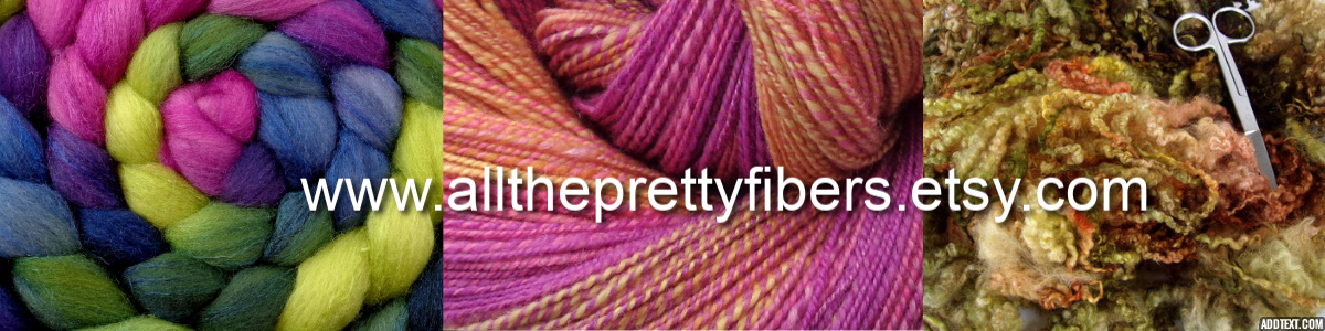 Die handgesponnenen Garne, Spinnfasern und Filzwolle finden Sie in meinem Etsy-Lädchen All The Pretty Fibers (bitte auf das Bild klicken).